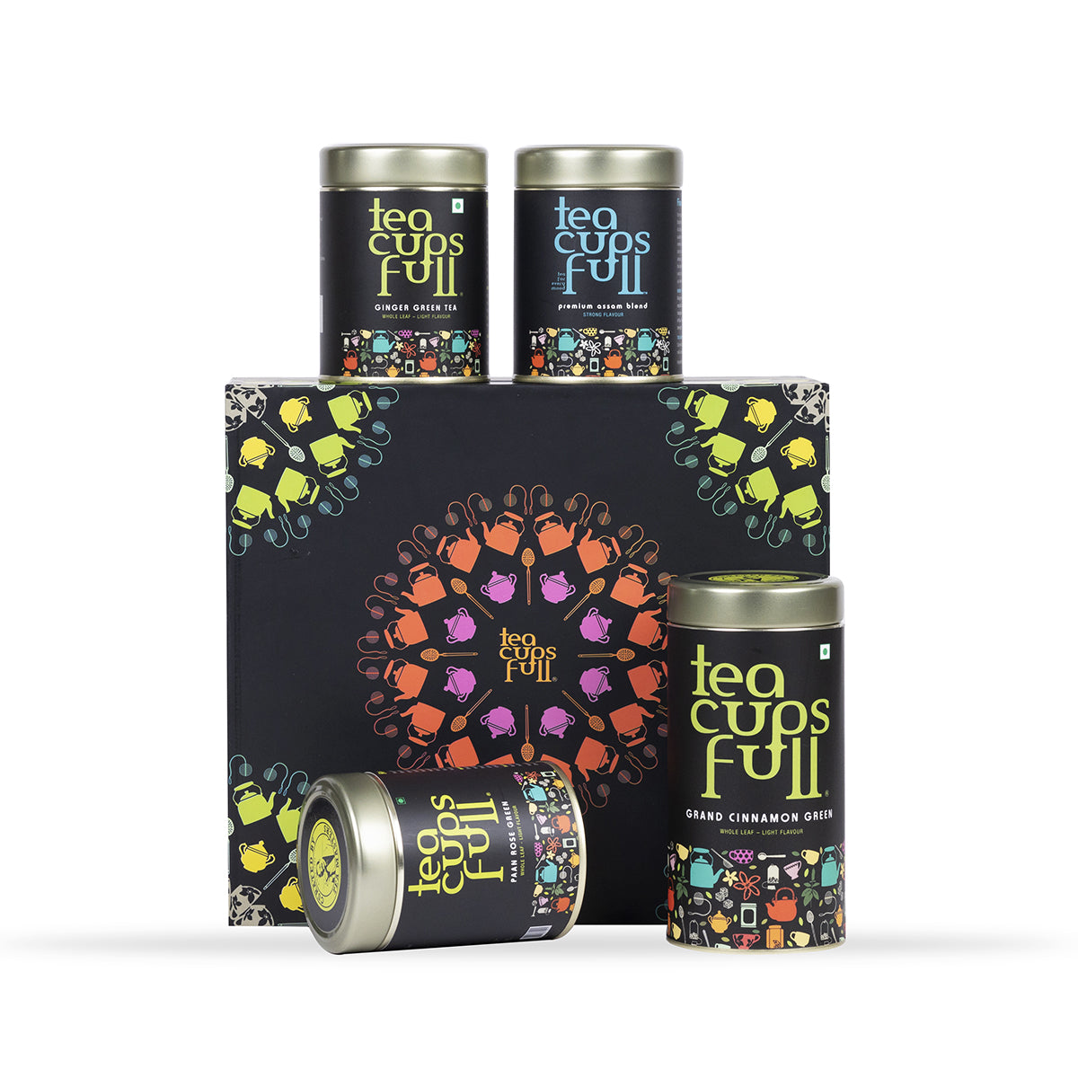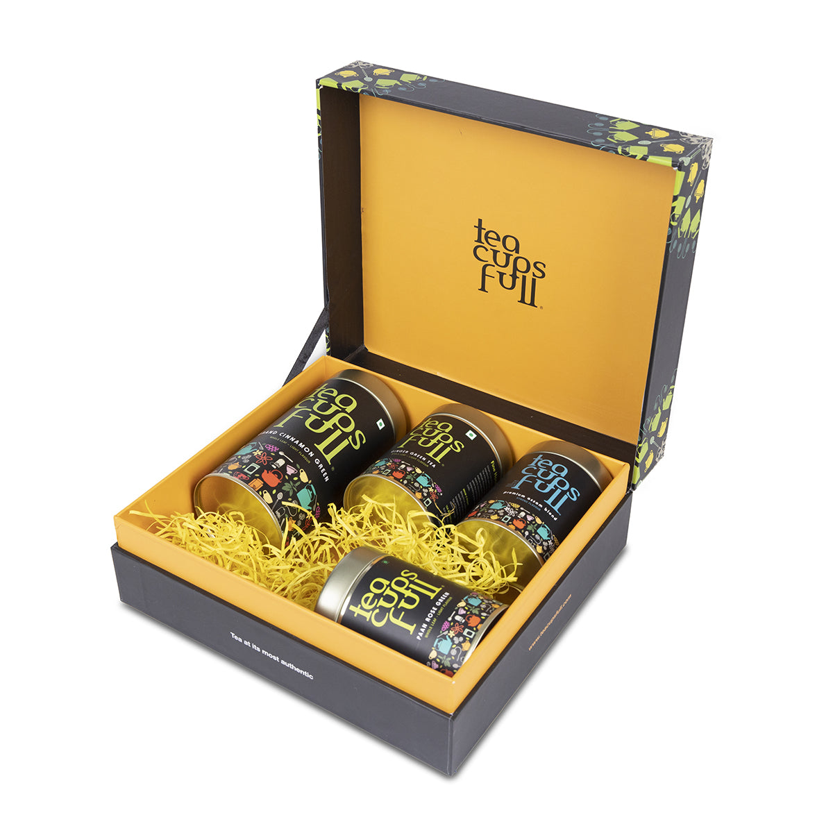 Our classic teas gift set features a selection of green teas with herbal infusions and our signature Premium Assam Blend which is a mix of Darjeelinga d Assam together. These teas are perfect for starting your day off right or enjoying a mid-afternoon break.