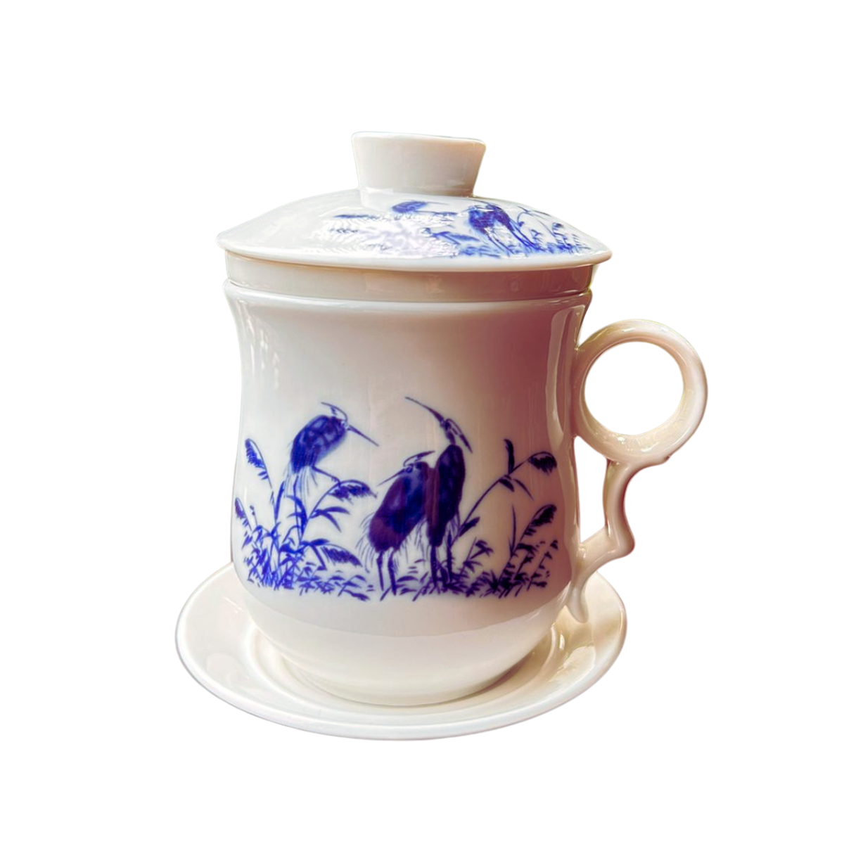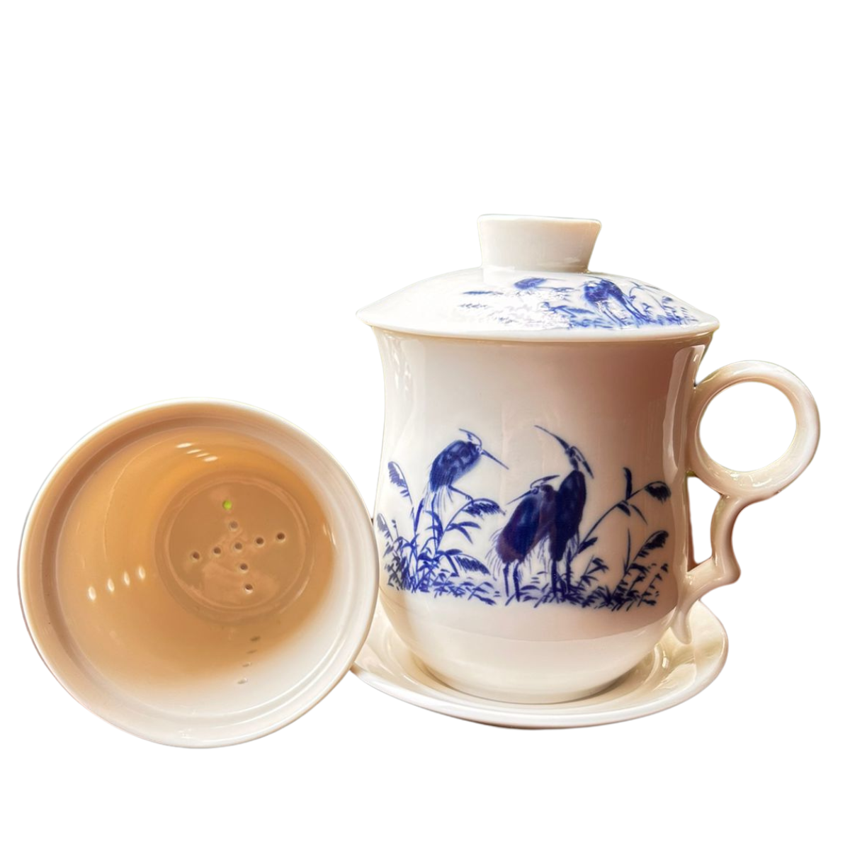 This fine porcelain Green Tea Mug is perfect for brewing any kind of tea especially whole leaf teas. This beautiful Chinese porcelain tea mug is decorated with beautiful prints. Use it with it's infuser to brew whole leaf teas or without infuser for regular milk teas. Made of fine porcelain, it is a 4 piece set with a mug, an infuser, a saucer and a lid. Makes tea brewing convenient and pleasurable. Helps to reuse the leaves for at least 2 - 3 times. Best gift for tea lovers, friends and family.